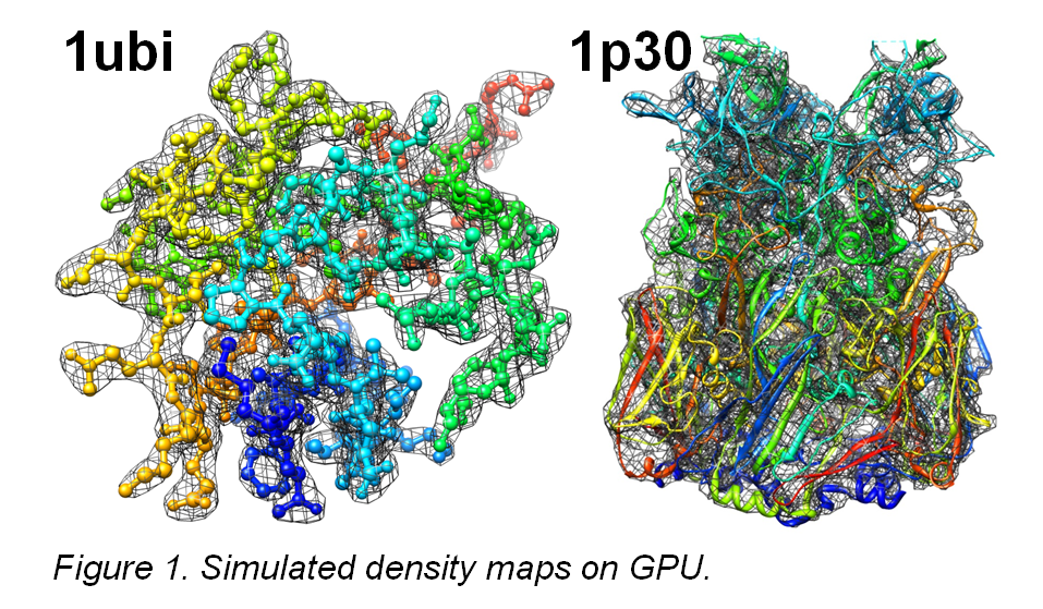 Many protein structures are elucidated to atomic detail using x-ray crystallography or nuclear magnetic resonance (NMR) experiments and are deposited in the PROTEIN DATA BANK (PDB). However, macromolecular assemblies are most relevant in understanding biological processes. Cryo-electron microscopy (cryo-EM) is an experimental technique that generates 3D electron density maps of medium resolution (7-10Å) for large macromolecular assemblies. A fitting or docking procedure for known atomic models within the assembly is needed to place these models into the experimental density map. Initial likely placements are refined to find the local optimum and discard incorrect arrangements. In recent years, graphical processing units (GPUs) have grown in popularity since they can now be programmed with higher-level languages like the industry standard OpenCL. GPUs are ideal in processing parallel computations and show significant speed ups over CPU implementations. The presented work applies GPUs to rapidly refine initial placements of protein models into low resolution density maps thereby accelerating construction of atomic-detail models for large macromolecular assemblies.