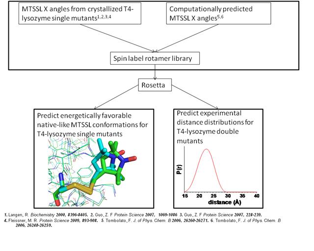 The EPR probe, or spin label, consists of an unpaired electron spin covalently linked at a specified residue position. The spin label projects from the backbone in some unknown orientation so it is nontrivial to relate a distance measured between to spin labels into a distance between two points on the backbone. Additionally, measured solvent accessibility indicates the exposure level of a spin label in relation to solvent. This makes it difficult to derive a relationship between the EPR measurement and the local protein configuration.
